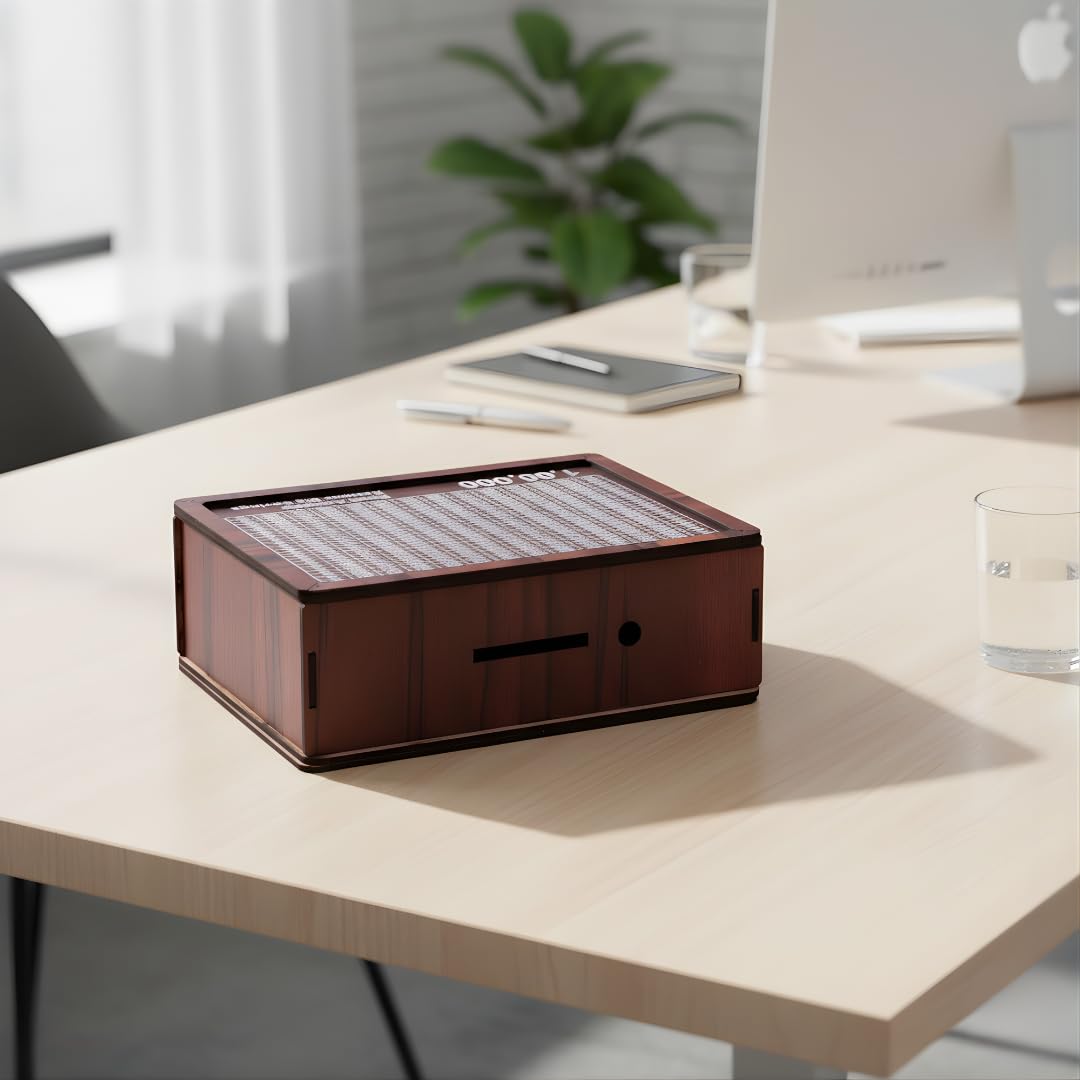 ikkubans 7*5 INCHWooden Money Saving Box| Cash Saver Money Box with Counting Target|wooden Coin Bank (Brown)